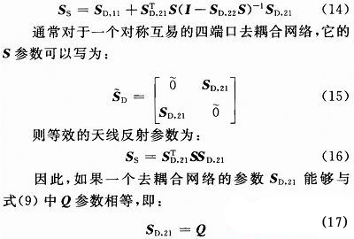 對于一個雙天線系統,應該有兩個正交模同時存在,去耦合網絡是一個四端口網絡,正交輻射矩陣可以寫為: