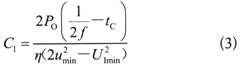 設交流電壓u的最小值為umin。u經(jīng)過橋式整流和CI濾波,在u=umin情況下的輸入電壓波形如圖2所示。該圖是在Po=POM,f=50Hz、整流橋的導通時間tC=3ms、η=80%的情況下繪出的。由圖可見,在直流高壓的最小值UImin上還疊加一個幅度為UR的一次側脈動電壓,這是CI在充放 電過程中形成的。欲獲得CI的準確值,可按下式進行計算: