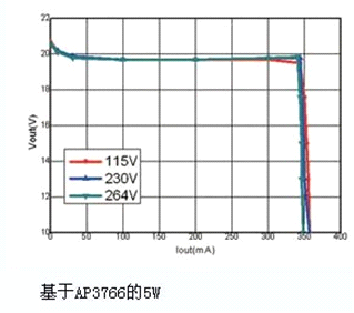 2. AP3766采用專有的“亞微安啟動電流”技術,僅需0.6μA的啟動電流,因此降低了啟動電阻R1和R2上的功耗,提高了系統效率。典型5W應用效率大于80%,空載功耗小于30mW。