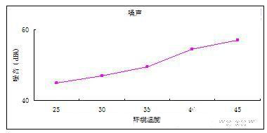 音頻噪聲污染主要控制方法是選用低噪音換熱單元,同時機(jī)柜采用消音措施。研究表明,換熱單元調(diào)速可有效的降低機(jī)柜噪音。圖5是某型戶外產(chǎn)品噪音水平與環(huán)境溫度關(guān)系曲線,從曲線可看出,采用調(diào)速后,隨著環(huán)境溫度減小,戶外柜噪音明顯降低。由于夜晚時環(huán)境溫度變低,因此采用該項技術(shù)的設(shè)備晚間有更低的噪音水平,非常符合實際應(yīng)用環(huán)境的需要。