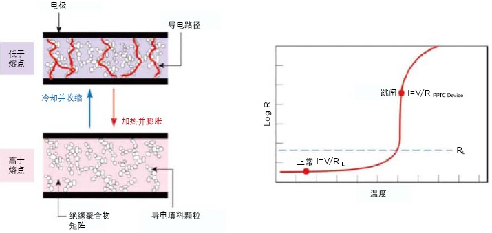 PolySwitch器件是用導電填料制造的,如炭黑,可以提供貫穿器件的導電通道。這種器件在正常工作條件下具有電阻較低的特性,而當過多電流流經該器件時,其溫度會升高,晶體狀聚合物會改變成非晶態。