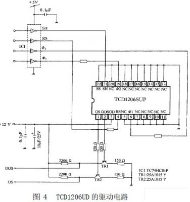 在1MHz 數據率情況下工作時,有效像元輸出時間為2.16ms,鋼絲繩直徑信號產生于2.16ms 期間。輸出信號的暗電平可控制在1.0V 左右。而高電平可接近10V,相差比較大。當光學系統調整得比較好時,圖像邊緣的信號比較陡,測量誤差較小。TCD1206UD 的工作原理和驅動電路如下: