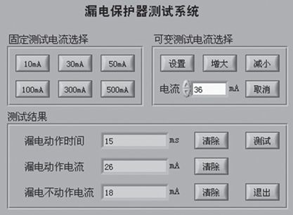 系統(tǒng)開始測試后,根據(jù)設定測試參數(shù),自動對測試設備進行初始化,軟件制定控制端口控制字,以選擇適合的硬件電路回路和采樣電阻。使測試電流從小于0.2 I△n開始,在30s內穩(wěn)定地增加至I△n,測定漏電保護器斷開瞬間的漏電電流值I△,若滿足I△n0<I△<I△n,則漏電保護器的漏電動作電流合格。同時完成測量漏電保護器的動作時間。此系統(tǒng)還可以直接選擇固定的測試電流,直接測量漏電保護器的動作時間。