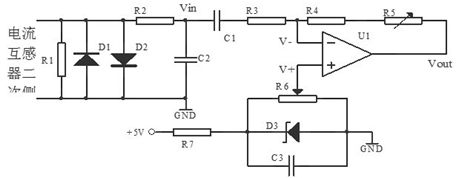 電流檢測電路如圖3所示。通過電流互感器對測試電流進行采樣,將電流互感器的二次側輸出信號經(jīng)濾波、放大、電壓提升等電路,變換為A/D模塊可以采集的單極性電壓信號(0~5V)后送入LPC2132。