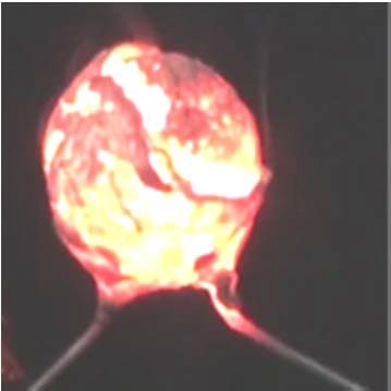b、暫態(tài)過電壓破壞,這是指較強(qiáng)的暫態(tài)過電壓使電阻體穿孔,導(dǎo)致更大的電流而高熱起火,整個(gè)過程在較短時(shí)間內(nèi)發(fā)生。