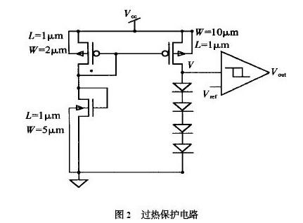 介紹了一種利用串連二極管構成的過熱保護電路的電路結構,工作原理,及參數調節的要點,也簡要提及了版圖的繪制。該過熱保護電路結構簡單、原理清晰、性能可靠,適用于功率集成電路。