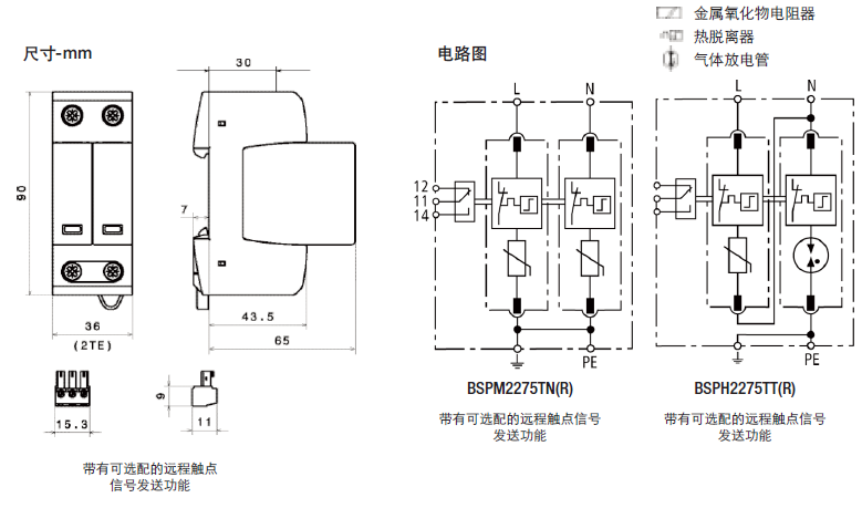 這種雙極設(shè)備的特點是,在TN系統(tǒng)中作為一種結(jié)合了避雷器和浪涌保護器的模塊使用(“2-0”電路)。
