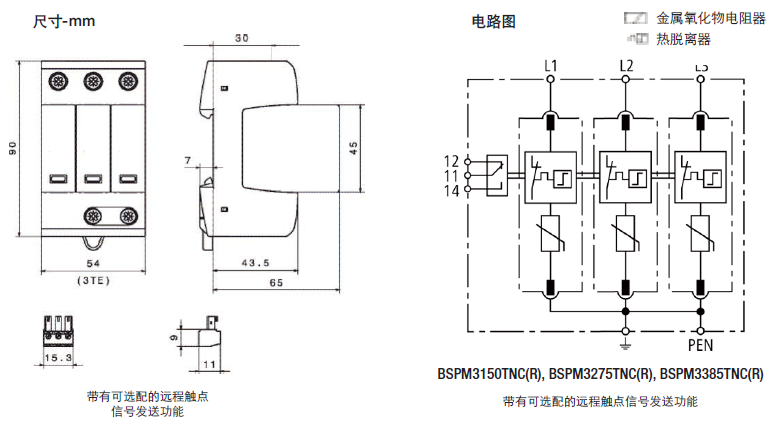 這種三極設(shè)備的特點是,用于TN-C 230/400V系統(tǒng)("3-0"電路)中防止浪涌。