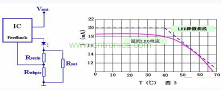 *實現無需IC控制的驅動電路設計,此電路亦可使LED電流隨溫度改變