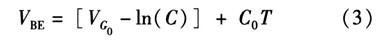 如果忽略由溫度變化引起lnT項變化對式(2)的影響,dVBE/dT可近似等于常數C0。常溫下C0約為-2 mV/K。為了簡化計算,則PN結關于溫度的變化方程可近似線性為![]()