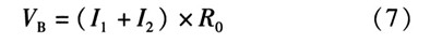 B點的電壓為電阻上的電壓,可由歐姆定理計算得到。計算溫度上升翻轉點TH,當溫度上升時,由前分析可知,TSD為高電平,M2截止。因此流入R0的電流只有I1一路。此狀態下VB電壓的表達式為