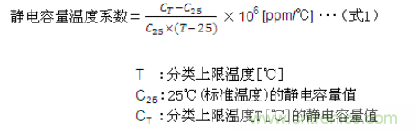 (1)一種是在公共標(biāo)準(zhǔn)中被歸類于種類Ⅰ (Class1)的溫度補償用獨石陶瓷電容器中,使用了二氧化鈦與鋯酸鈣類電介質(zhì)材料,其靜電容量對溫度幾乎呈現(xiàn)直線性變化。將溫度發(fā)生的變化稱為溫度系 數(shù),其數(shù)值以每1℃的百萬分之一作為單位(ppm/℃)表示。溫度系數(shù)根據(jù)基準(zhǔn)溫度(IEC,JIS標(biāo)準(zhǔn)中為20℃,EIA標(biāo)準(zhǔn)中為25℃,此處以25℃ 為基準(zhǔn))中的靜電容量值C25與分類上限溫度(最高使用溫度:設(shè)計上可連續(xù)使用電容器的最高環(huán)境溫度)中的靜電容量值CT定義得出。