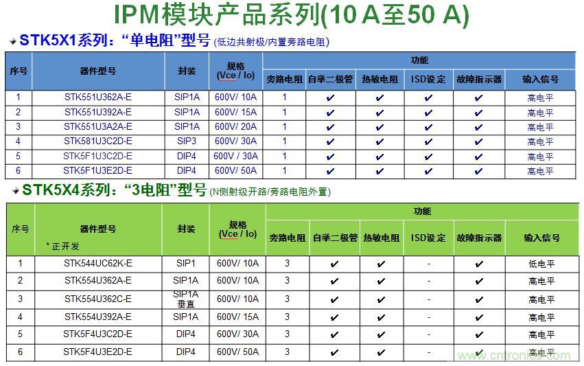 表1:安森美半導體IPM模塊產品陣容。
