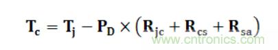 其中Tc為芯片的外殼溫度,PD為芯片在該環境中的耗散功率,Tj表示芯片的結點溫度,目前大多數芯片的結點溫度為150℃,Rjc表示芯片內部至外殼的熱阻,Rcs表示外殼至散熱片的熱阻,Rsa表示散熱片到空氣的熱阻,一般功率器件用Rjc進行計算即可。