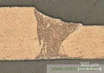 為了防腐蝕,大多數(shù)的熱成型材料都有鋁硅涂層。而在激光焊接過(guò)程中,鋁硅涂層將在焊縫中形成FeAl合金金相(如圖1所示),從而導(dǎo)致激光焊縫無(wú)法通過(guò)抗拉強(qiáng)度測(cè)試。因而,在激光焊接前必須去除鋁硅涂層。