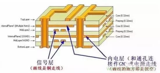 通常簡稱為內電層,僅在多層板中出現,PCB板層數一般是指信號層和內電層相加的總和數。與信號層相同,內電層與內電層之間、內電層與信號層之間可通過通孔、盲孔和埋孔實現互相連接。