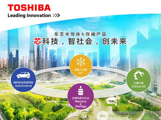 依托領先的芯片技術,構建智能的社會生活,從而開創充滿想象力的未來——這主題不僅僅展示了東芝作為先進半導體技術和產品的全球領導者的社會責任和愿景,更是對東芝半導體現狀的描述。依托該主題,東芝本次展會將展出以應用領域劃分的“Automotive”、“IoT”、“Industrial”和“Memory & Storage”的最新技術和產品。具體包括: