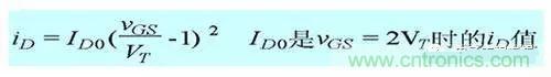 在轉移特性曲線上,gm 是曲線在某點上的斜率,也可由iD的表達式求導得出,單位為 S 或 mS。