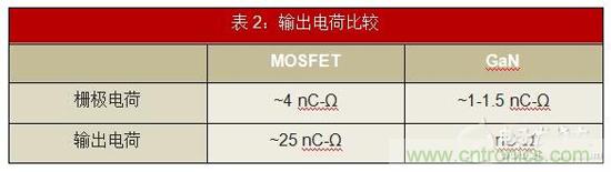 • 較低的柵極和輸出電荷:GaN提供較低的柵極電荷。與MOSFET的4nC相比,典型的中壓器件具有大約1nC的柵極電荷(表2)。較低的柵極電荷使設計具有更快的導通時間和轉換速率,同時減少損耗。