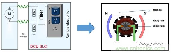 電機有磁極、轉(zhuǎn)子線圈、換向器組成。根據(jù)右手定律轉(zhuǎn)子線圈通電后再磁極磁場的作用下產(chǎn)生運動。運動到磁場邊緣是磁場變?nèi)酰妱觿轀p小,電流增大。換向器改變轉(zhuǎn)子線圈的電流方向,重新進入磁場電動勢增大,電流減小。轉(zhuǎn)子線圈不斷轉(zhuǎn)動、電動勢和電流不斷變化,從而紋波不斷產(chǎn)生。所以紋波是電機的固有特性,通過計算紋波的個數(shù)就能計算出轉(zhuǎn)子換向的次數(shù),就能計算出窗戶的相對位置,結(jié)合時間就能得出電機的轉(zhuǎn)速。