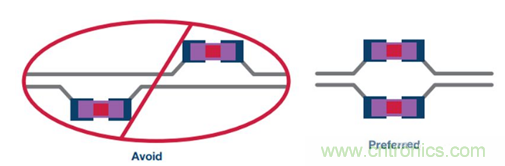 差分對(duì)之間的間距應(yīng)較寬,以使其間的串?dāng)_最小。