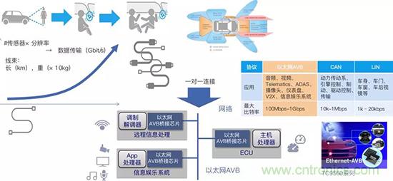 他表示隨著自動(dòng)駕駛和車(chē)聯(lián)網(wǎng)的發(fā)展,汽車(chē)搭載越來(lái)越多的傳感器和越來(lái)越多的攝像頭。這帶來(lái)的挑戰(zhàn)就是數(shù)據(jù)傳輸需求越來(lái)越高。為了提升數(shù)據(jù)傳輸,車(chē)內(nèi)線纜會(huì)長(zhǎng)達(dá)到幾公里重達(dá)幾十公斤,為了簡(jiǎn)化連接,汽車(chē)行業(yè)推出了新的車(chē)專用以太網(wǎng),它可與現(xiàn)有的車(chē)載用車(chē)身數(shù)據(jù)通訊系統(tǒng)通信,所以激發(fā)了車(chē)載以太網(wǎng)橋接芯片的需求。