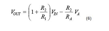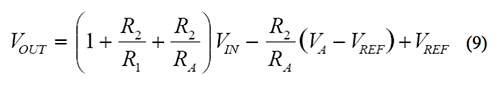 如果相對于原始等式中的 VREF 取 VOUT 和 VA,則可得到相同的結果。VA(MAX) – VREF 也應替換等式(7)中的 VA(MAX)。