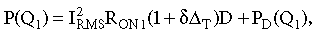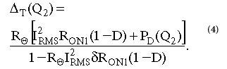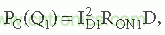其中I D是漏極電流,R ON是制造商規(guī)定的標稱環(huán)境溫度下的溝道電阻,D是Q 1的占空比。