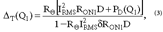 其中δ是R ON的溫度系數(shù),單位為°C -1,P D是動態(tài)損耗項,與R ON無關。