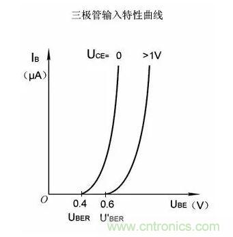 集-射極電壓UCE為某特定值時(shí),基極電流IB與基-射電壓UBE的關(guān)系曲線。