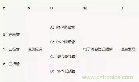 不同的國(guó)家/地區(qū)對(duì)三極管型號(hào)命名方式不同。還有很多廠家使用自己的命名方式。