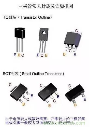 當(dāng)前,塑料封裝是三極管的主流封裝形式,其中“TO”和“SOT”形式封裝最為常見。