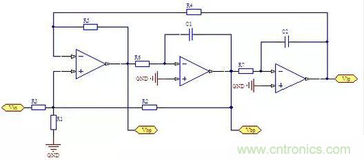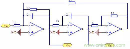 原始信號減去帶通信號就稱為帶阻信號了,因此再增加一個(gè)運(yùn)放就可以實(shí)現(xiàn)帶阻型濾波器。