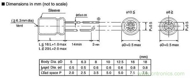 二、直插式電容封裝及尺寸