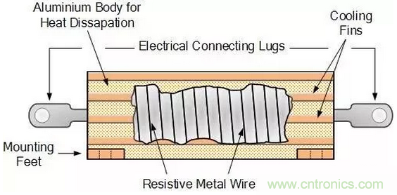 繞線電阻是將鎳鉻合金導線繞在氧化鋁陶瓷基底上,一圈一圈控制電阻大小。繞線電阻可以制作為精密電阻,容差可以到0.005%,同時溫度系數非常低,缺點是繞線電阻的寄生電感比較大,不能用于高頻。繞線電阻的體積可以做的很大,然后加外部散熱器,可以用作大功率電阻。