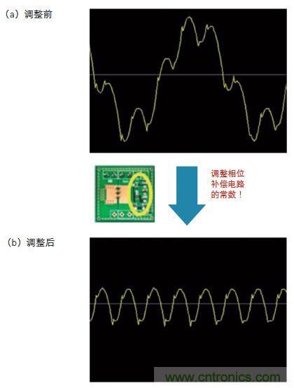 圖2:異常振蕩時和正常工作時的輸出電壓波形 (a)為出現異常振蕩時的輸出電壓波形。(b)為正常工作時的輸出電壓波形。通過調整反饋環路相位補償電路的常數,能夠防止異常振蕩。