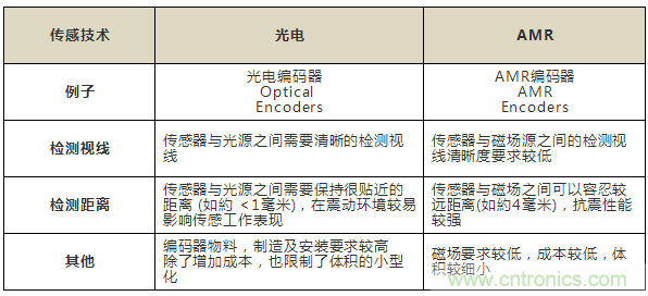 表1:光電和AMR傳感技術的比較