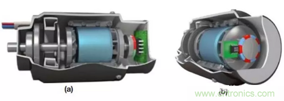 針對大多數BLDC控制系統,根據可用空間大小和電機軸的可接近性,有許多方法來配置和安裝傳感器。以ADA4571作例,如圖3所示是兩個較普遍的安裝配置。
