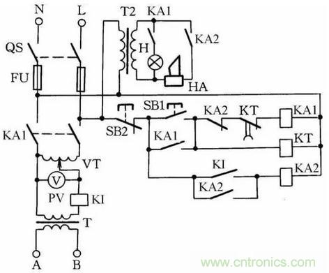 若被測物絕緣擊穿,電流即迅速增加,過電流繼電器KI動(dòng)作,KA2得電動(dòng)作并自鎖,KA1失電,KA1的常開觸點(diǎn)切斷主回路電源,蜂鳴器HA發(fā)出聲響,按下SB2后電路全部關(guān)斷。應(yīng)用操作這種儀器時(shí),要特別注意人身安全,工作通電時(shí),高壓測試區(qū)禁止人靠近。
