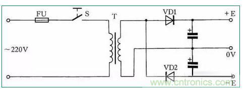 在實(shí)際工作中,往往用電設(shè)備為雙電源,并且對稱。在手頭只有單電源的情況下,按圖37所示連接,即可使其變?yōu)殡p對稱電源使用。
