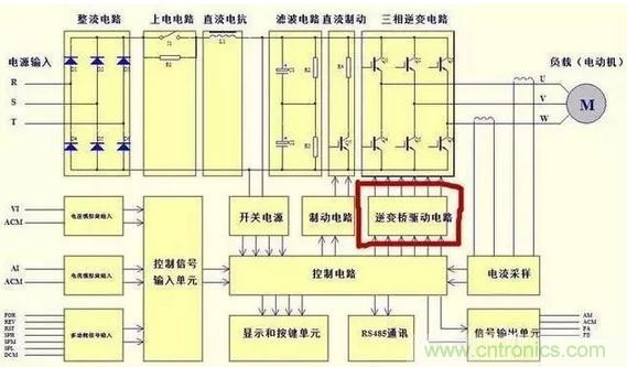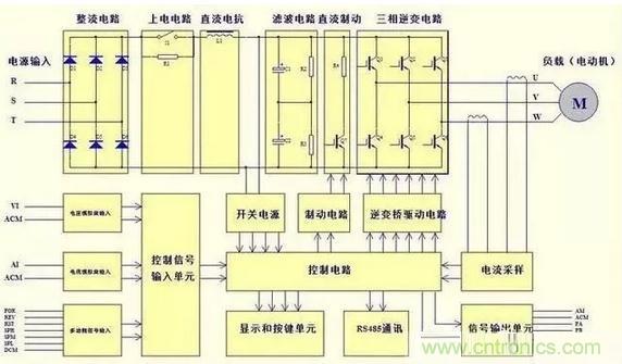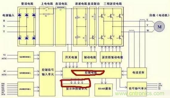 下圖是常見(jiàn)類(lèi)型的變頻器的整機(jī)電路框圖