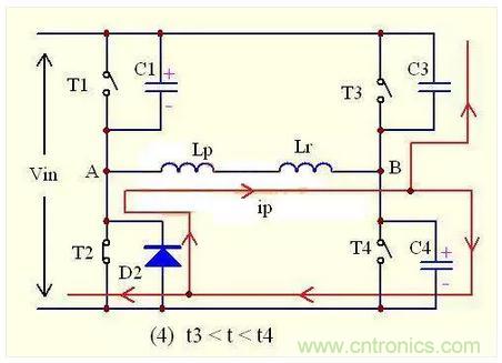 工作模態(tài)四:正半周期滯后臂諧振過(guò)程