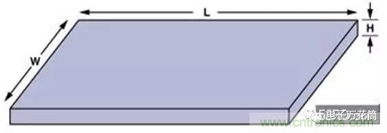 當尋找有問題的寄生源時,可能用得著幾個計算上述那些寄生電容尺寸的基本公式。(公式一)是計算平行極板電容器的公式,如(圖五)。