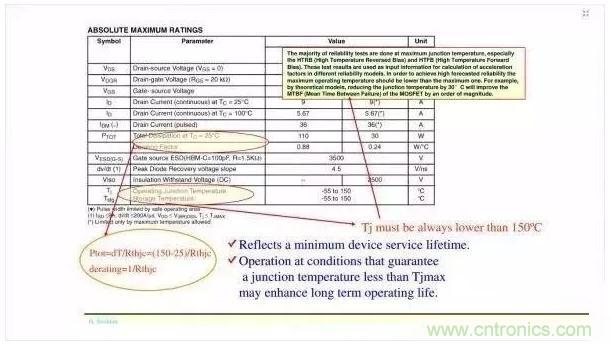 今天看到一篇文檔,上面有提到MOSFET的壽命是跟溫度有關的。(下圖紅色框中)