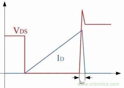 MOSFET雪崩時,波形上一個顯著的特點是VDS電壓被鉗位,即上圖中VDS有一個明顯的平臺