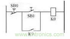 I/O分配SB0-X0,SB1-X1,輸出K0-Y0。當(dāng)外部使用長(zhǎng)閉觸點(diǎn),不操作該按鈕,輸出Y0正常接通,在PLC控制系統(tǒng)中,外部開關(guān)無論是啟動(dòng)還是停止一般都選用常開型。