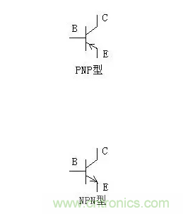 一般,管型是NPN還是PNP應(yīng)從管殼上標(biāo)注的型號來辨別。依照部頒標(biāo)準(zhǔn),三極管型號的第二位(字母),A、C表示PNP管,B、D表示NPN管,例如: