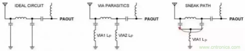 應遵循原則:確保對敏感區(qū)域的過孔電感建模;濾波器或匹配網絡采用獨立過孔;較薄的PCB覆銅會降低過孔寄生電感的影響。