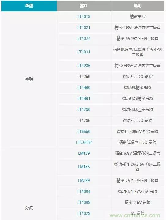 基準電壓源主要有兩類:分流和串聯(lián)。ADI的串聯(lián)和分流基準電壓源參見表2。