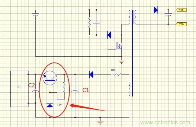分析下來沒有什么大的功耗,消耗了一部分功耗但對于效率影響很小,比如要是沒有這個穩壓電路,這個14V加在IC之上,而IC功率消耗很大一部分是用在驅動輸出之上,IC上的大部分損耗為Vcc*Ig(Vcc電壓*驅動電流),對于芯片來說,Vcc越高損耗就越大。所以加這個穩壓電路沒有增大多少功耗,只是把本該IC的部分功耗轉移到了三極管之上,當然主要是要把IC的供電電壓穩住。